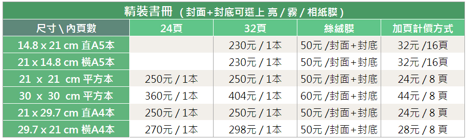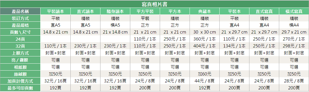 我們提供各類的裝訂規格,讓您無論是單純膠裝或是精緻裝訂,甚至是頁面無接縫跨頁裝訂都能完美呈現您的寫真精彩畫面!