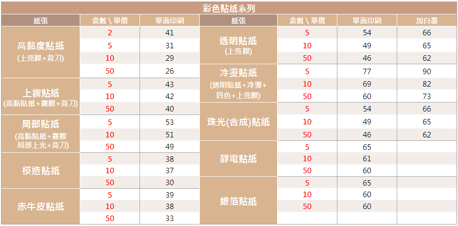* 印製一次以十卷基本起印數量,印製工作天約為4-5天。